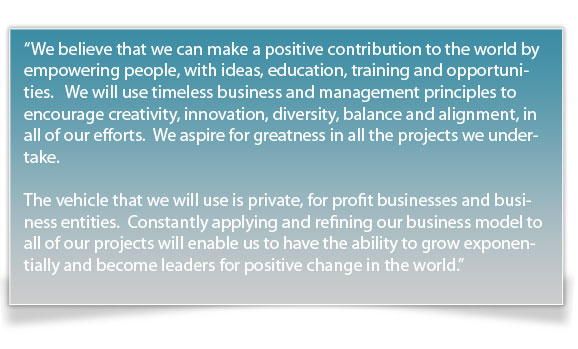 Our Core Ideology is the statement of what our company stands for and the purpose it exists, beyond making money. This never changes. It is a given that we will make money. We cannot grow or be successful in this venture without being profitable. Our Core Ideology is the fuel that feeds this fire. . . . . because it is the right thing to do!